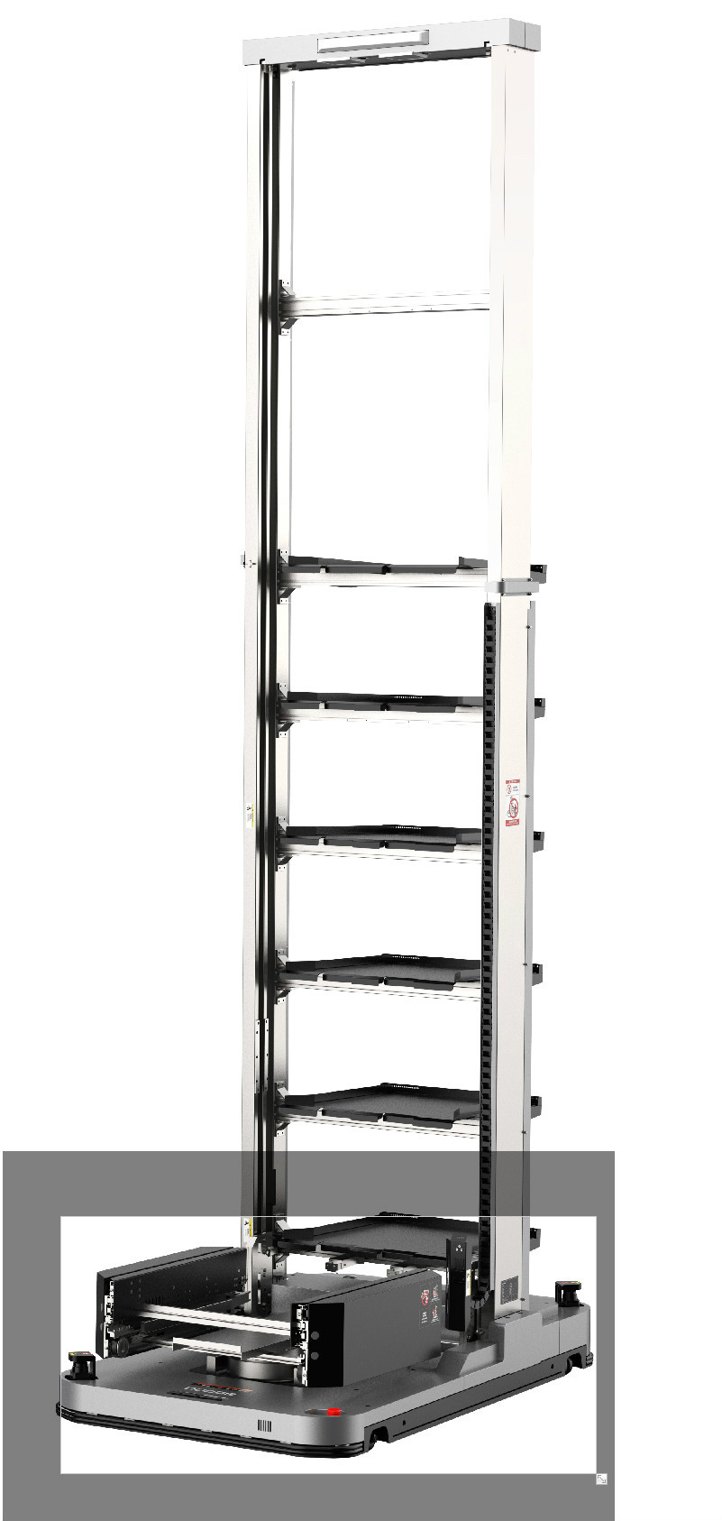 車身低矮,可以進(jìn)入低矮的料架地下牽引。潛伏牽引并且雙向運(yùn)行可以使轉(zhuǎn)彎半徑縮小,占地面積小。 驅(qū)動單元一鍵電動升降方便維護(hù)。最多可以指定1024個站點。 激光傳感器安全防護(hù)到位
